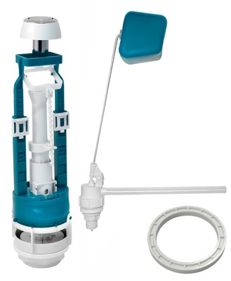 Комплект арматуры для бачка к унитазу. Универсальный сливной клапан СБкпм кнопочный с одним режимом слива.