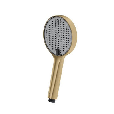Ручная лейка для душа Aiger (диаметр 120 мм) в трендовом оттенке матового золота выглядит красиво, стильно и современно благодаря однотонной темно-серой лицевой части и силиконовым форсункам в тон. Лейка будет гармонично сочетаться с любым одноцветным смесителем и душевым шлангом благодаря универсальному соединению G ½.