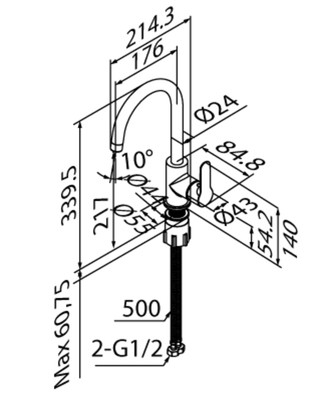 Гибкая подводка из нетоксичной EPDM резины в оплетке из нержавеющей стали, М10 - 1/2, длина 550 мм