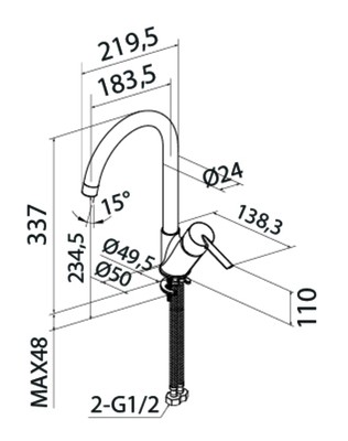 Смеситель для кухни Kitchen Line в современном дизайне подойдет практически к любому интерьеру. Благодаря высокому поворотному J-изливу будет удобен в использовании даже с неглубокой мойкой.