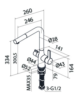 • Не требует дополнительного отверстия в мойке под фильтр. К смесителю можно подключить фильтр любого производителя и наслаждаться чистой водой прямо из смесителя – она удобно включается отдельной ручкой на корпусе.