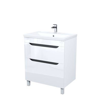 Напольная тумба для ванной Ray с умывальником и выдвижными ящиками – универсальная и практичная мебель, которая будет отлично смотреться в любом современном интерьере. Сочетание белого цвета, светло-серых элементов фасада и тёмно-серых ящиков создаёт стильный дизайн вне времени. У тумбы увеличенная высота, что делает её более вместительной и удобной.